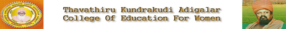 Thavathiru Kundrakudi Adigalar College Of Education For Women is established by Kundrakudi Thiruvannamalai Adheenam Trust, Kundrakudi, Sivagangai District, Tamil Nadu. Institution is managed by the Secretary Prof. Dr.S. Mohan M.A., M.Ed., Ph.D., PG.Dip in Statistics. Thavathiru Kundrakudi College of Education for Women was started in 2008 and has been recognized by the NCTE, New Delhi.